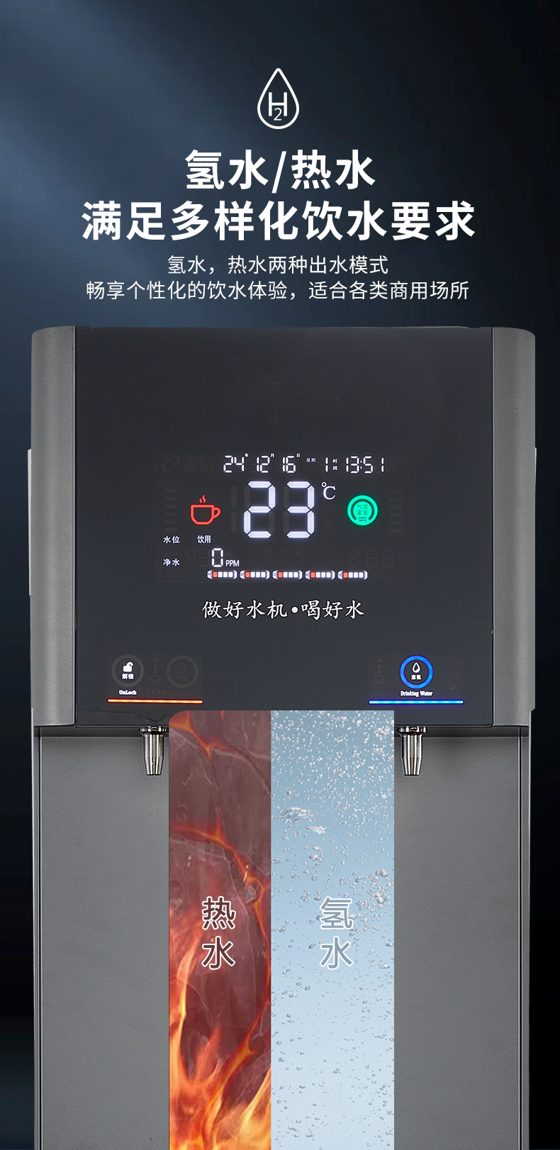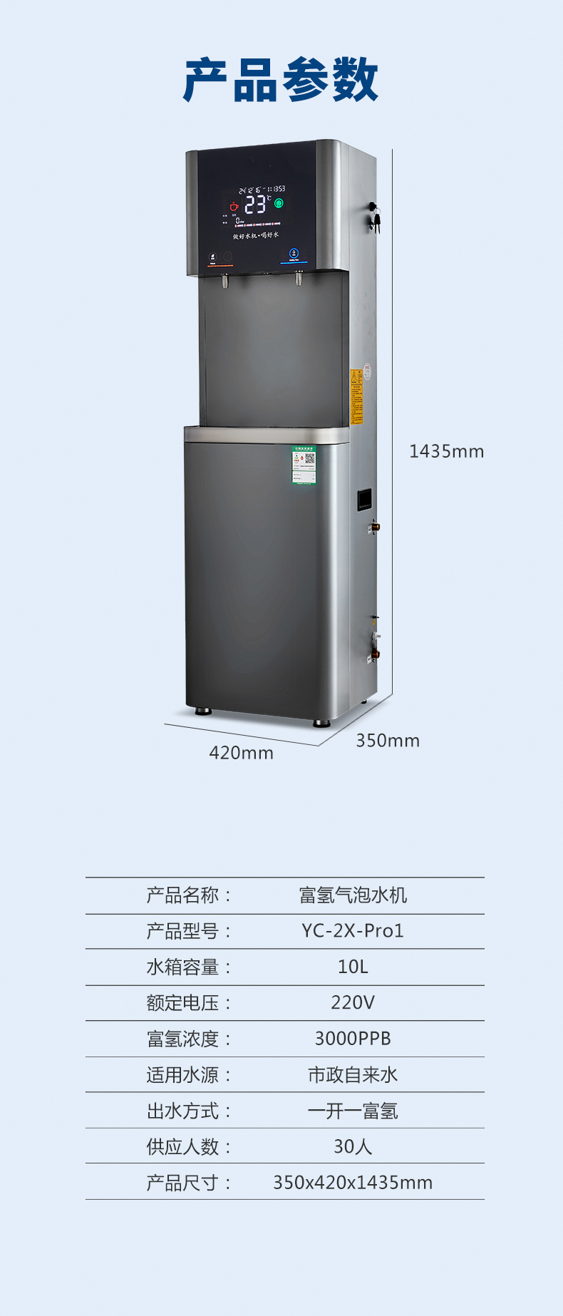 產水量:開水10L/H;富氫氣泡水30L/H